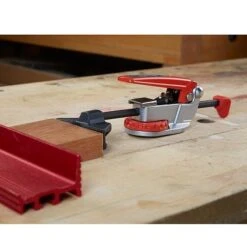 Armor Tool’s Auto-Pro In-Line Dog Clamp features patented auto-adjust technology mounted on a dog peg. Clamp rotates 360°, allowing for a wide range of clamping applications. Recommended minimum table thickness is 3/4″ for optimal clamping pressure and stability.