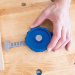 Hold workpieces of all shapes and sizes without the clamp getting in the way. Plus, get more from any bench that has 3⁄4″ (19mm) dog holes, or drill to add in-line clamping almost anywhere.