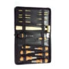 Japanese Umeki Chisels feature a crown or ridge down the center of the chisel that is equally sloped away from the ridge towards the sides of the chisel, thinning as it goes. With this side relief, these chisels can make cuts in tight places, which is why they are known as dovetail-style chisels. While not standard bench-style chisels, they are everyday woodworking chisels. Master Takao Shibano uses specially selected Aogami 2 Steel for the cutting base, which he then forge-welds to a softer iron to form the top layer each chisel, extending it into the shank and up into the tough White Oak handle. Overall length: approximately 8-3/4″; blade length 2-1/4″.